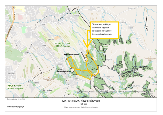 Prace zostały poprzedzone dokładnymi analizami przyrodniczymi pod kątem gniazdowania ptaków. To praktyka, dzięki której mamy pewność, że na wyznaczonych drzewach niebezpiecznych nie znajdują się żadne gatunki podlegające ochronie. Prace polegające na usuwaniu drzew i transporcie potrwają około dwa tygodnie. W tym czasie nie będzie można odwiedzać lasu.
